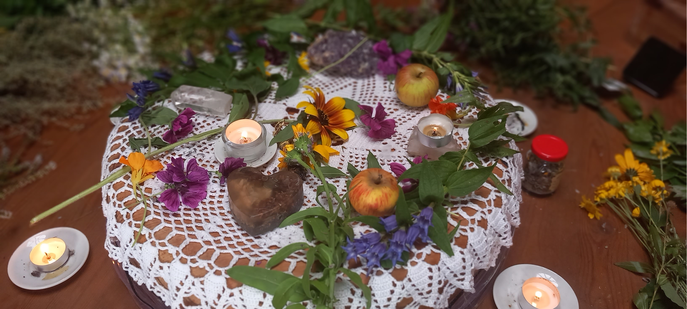 Rituale, Pflanzenwissen, Räucherung, Lieder, Reflexionsfragen, Meditationen und verkörperte Übungen passend zu den Themen im Jahreskreis